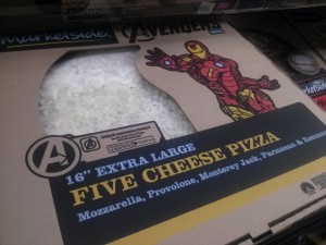 Tuesday is my long day. So getting pizza for the kids was just as much a treat for me as it was for them. They were excited to get to pizza to begin with. They were even more excited to get to pick out one with an Avenger hero on the box! Ironman won 2 to 1 and 1;). One kid wanted the Thor all meat and one wanted the Captain America pepperoni.