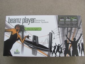 My kids love getting surprise boxes in the mail!!! (ok, so I knew it was coming;) I first saw Beamz at CES back in January this year and thought was great! Beamz is a light based interface that lets you play musical instruments along with a song on a computer. I was stoked when I got a chance to review one with my kids.
