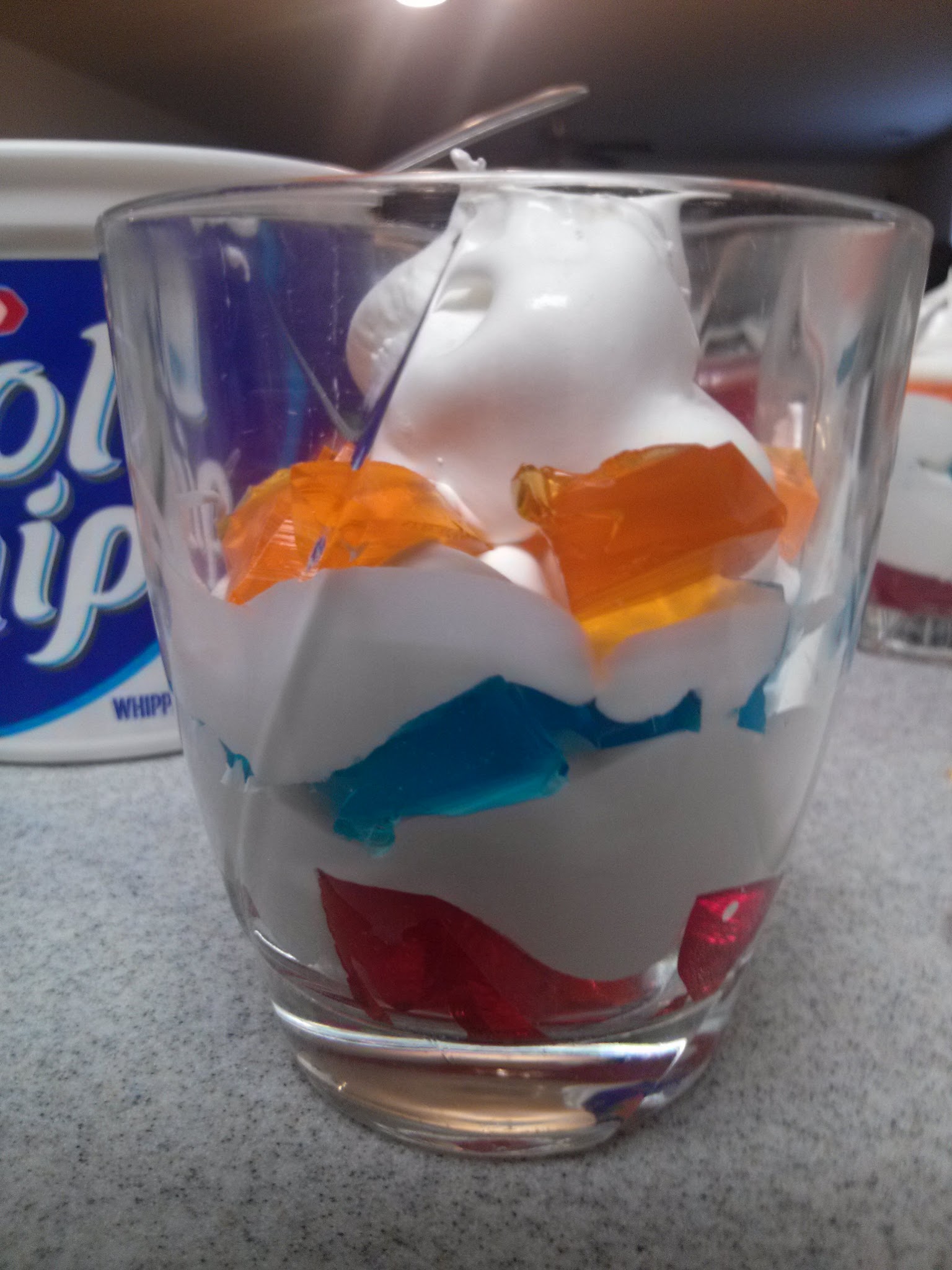 We even had a special Avengers themed dessert. True I bought a flat pack of premade Jello that I used in them but did I mention that Tuesday is my long and crazy day;). I paid $2.58 for 12 cups of Jello so I had some left over. It was a great night!