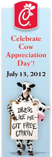 In other big dining out news…. Friday is Dress Like a Cow Day! If that doesn’t mean anything to you don’t worry. It is a big deal at Chick-Fil-A. Every year you dress up as a cow and get free food! How dressed up you are determines how much free food. A partial costume gets you a free entree while a full outfit gets you an entire meal!